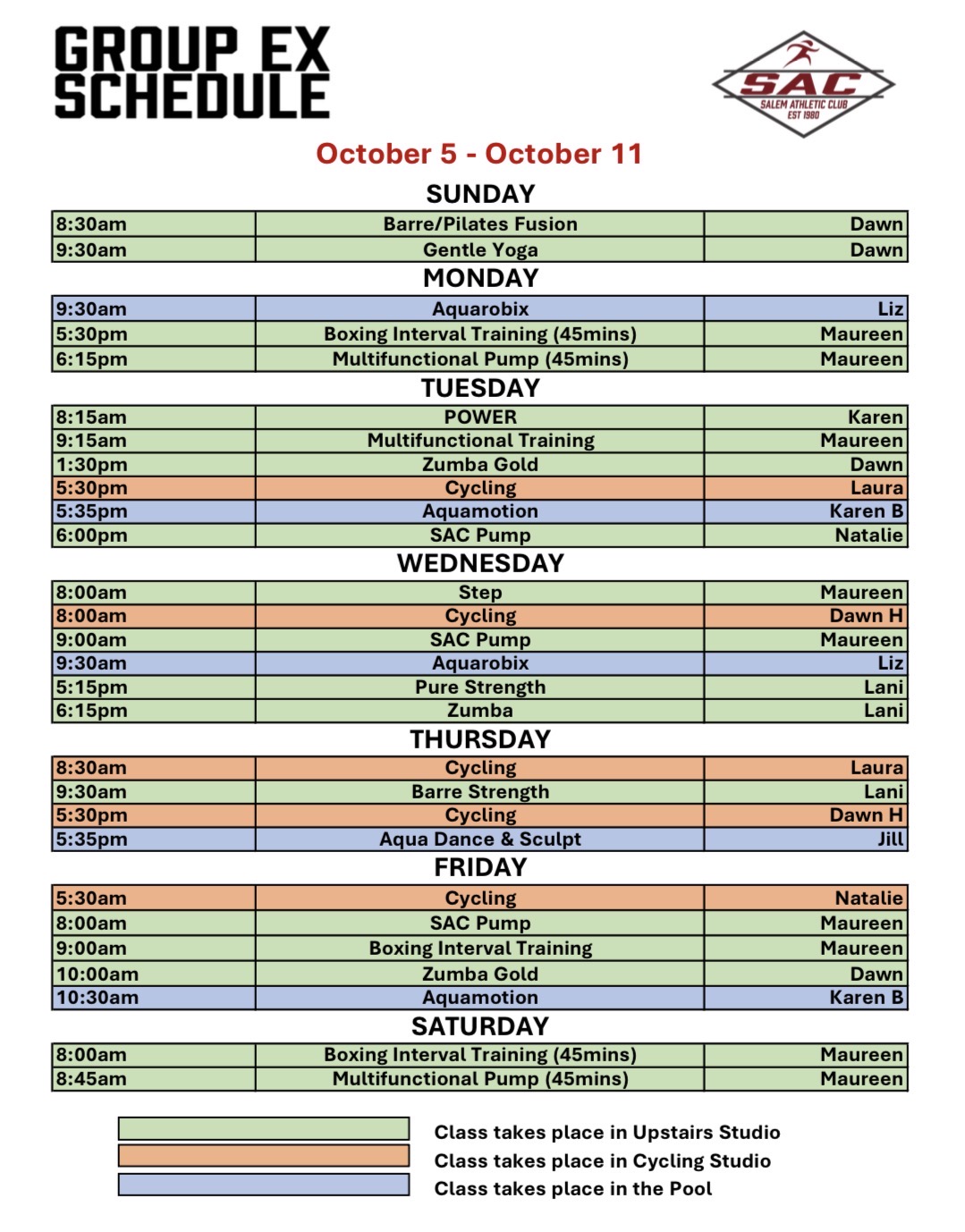 Intructors and/or classes are subject to change based on participation.